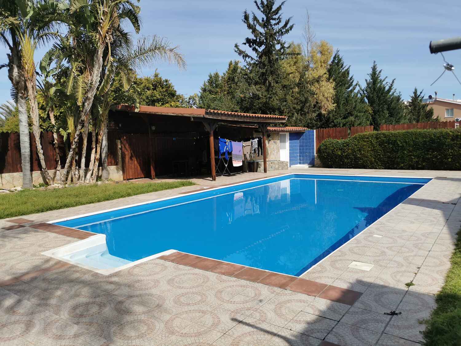 This well presented detached family home is located in the heart of Paliometocho just 10mins from Nicosia. Internally the property has spacious living, dining and entertaining areas with a total internal area of 425sqm and four bedrooms and two bathrooms on the upper floor.. Externally the property has huge gardens of 1468sqm and a garage for 2 cars and a swimming pool.