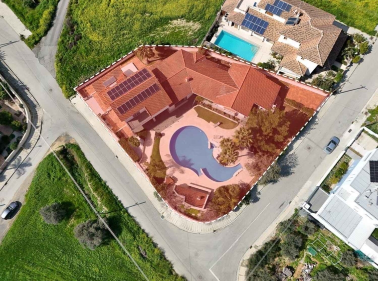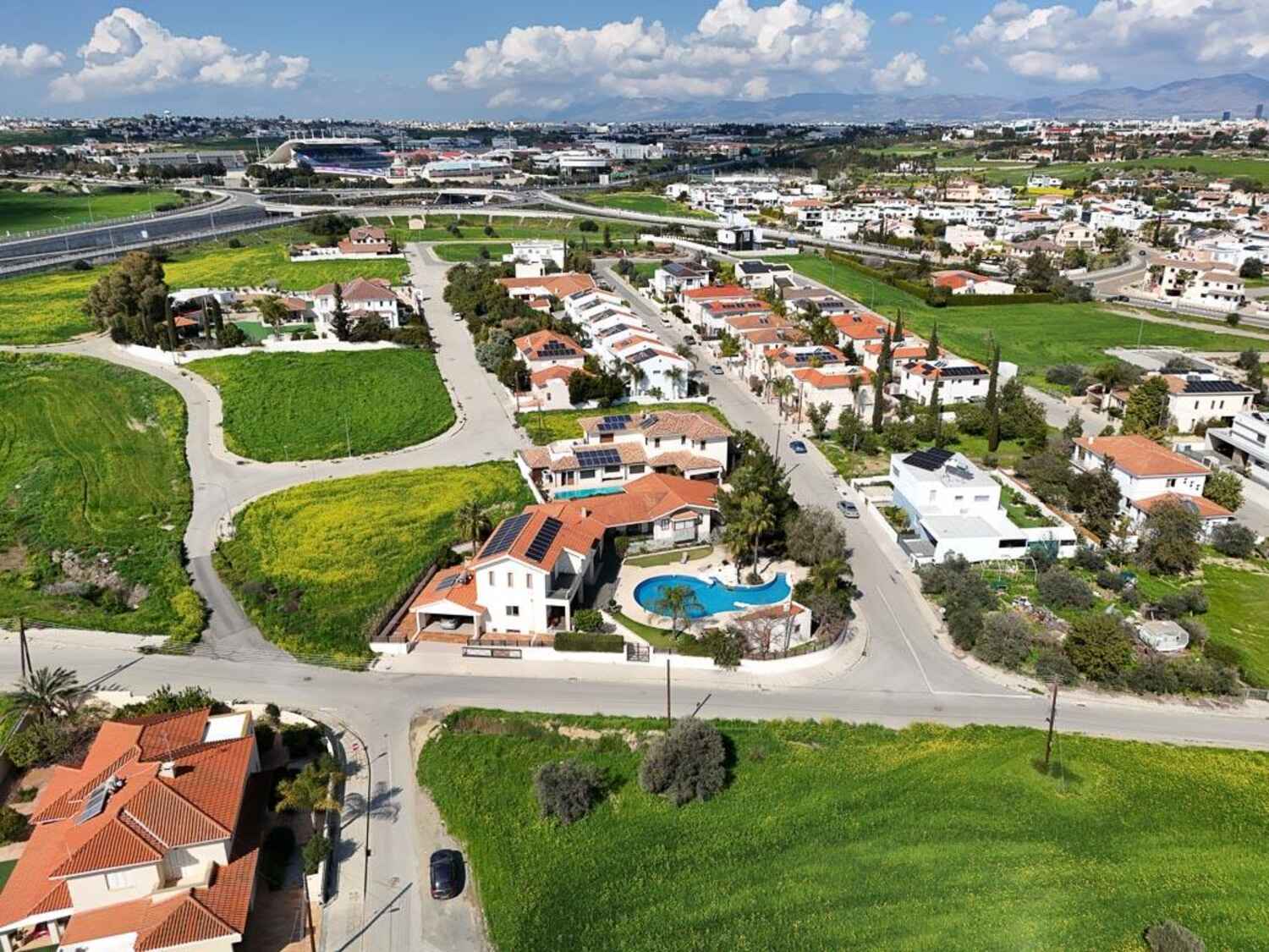 This two-storey luxury house with a private pool is located in Latsia at a distance of 400meters (approx.) southeast of the GSP stadium and close to the Senior School The property was constructed in 2003, and has a basement and an auxiliary building. The ground floor consists of a kitchen, a utility room, a dining/living area, an office, a bathroom, two bedrooms and a guest toilet. The first floor consists of one en-suite bedroom with a bathroom and walk-in wardrobe, an office and an uncovered veranda. The area of the internal spaces is 290sqm (approx.) plus covered verandas of 40sqm (approx.).The basement has a total area of 85sqm(approx.) and consists of a playroom, a bathroom, a boiler room and a kitchenette. The auxiliary building has a total area of 70sqm (approx.) and consists of a kitchen with sitting area, a toilet with a shower, two bedrooms and a veranda. In addition, there is a studio with a total area of 30sqm (approx.) which consists of a toilet and a shower. Externally there is a large garden with a swimming pool, a double covered parking space and a beautifully landscaped yard with a BBQ area.