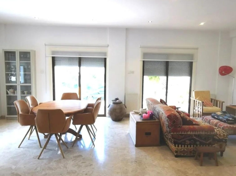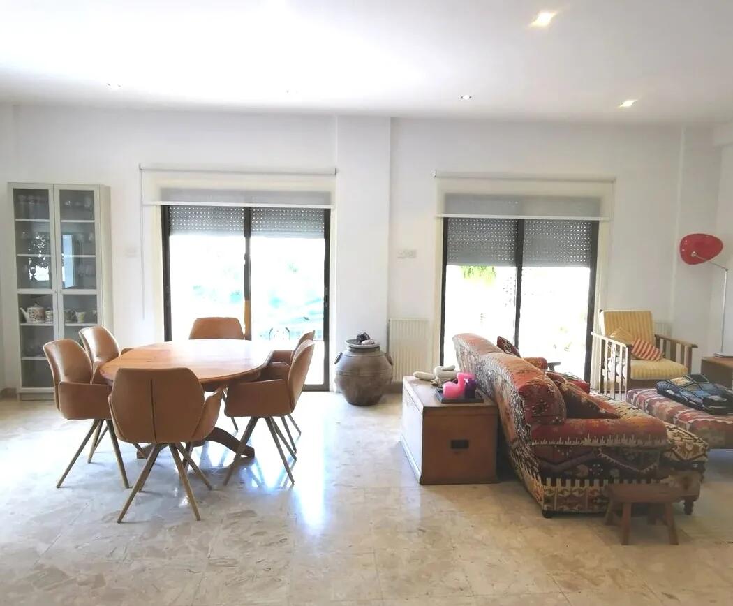 This spacious ground floor 3 bedroom apartment is located in Engomi in a quiet residential neighbourhood close to all local amenities. The property offers 3 large bedrooms, 2.5 bath, separate office, large kitchen diner, lots of outside veranda space both front and back. A full basement area of approx 150sqm with a maids room or guest studio. Two covered off-street parking space and title deeds.