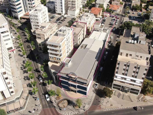 This 387sqm mixed-use building is located in Onasagorou street, Nicosia’s commercial center and pedestrian-only shopping street.