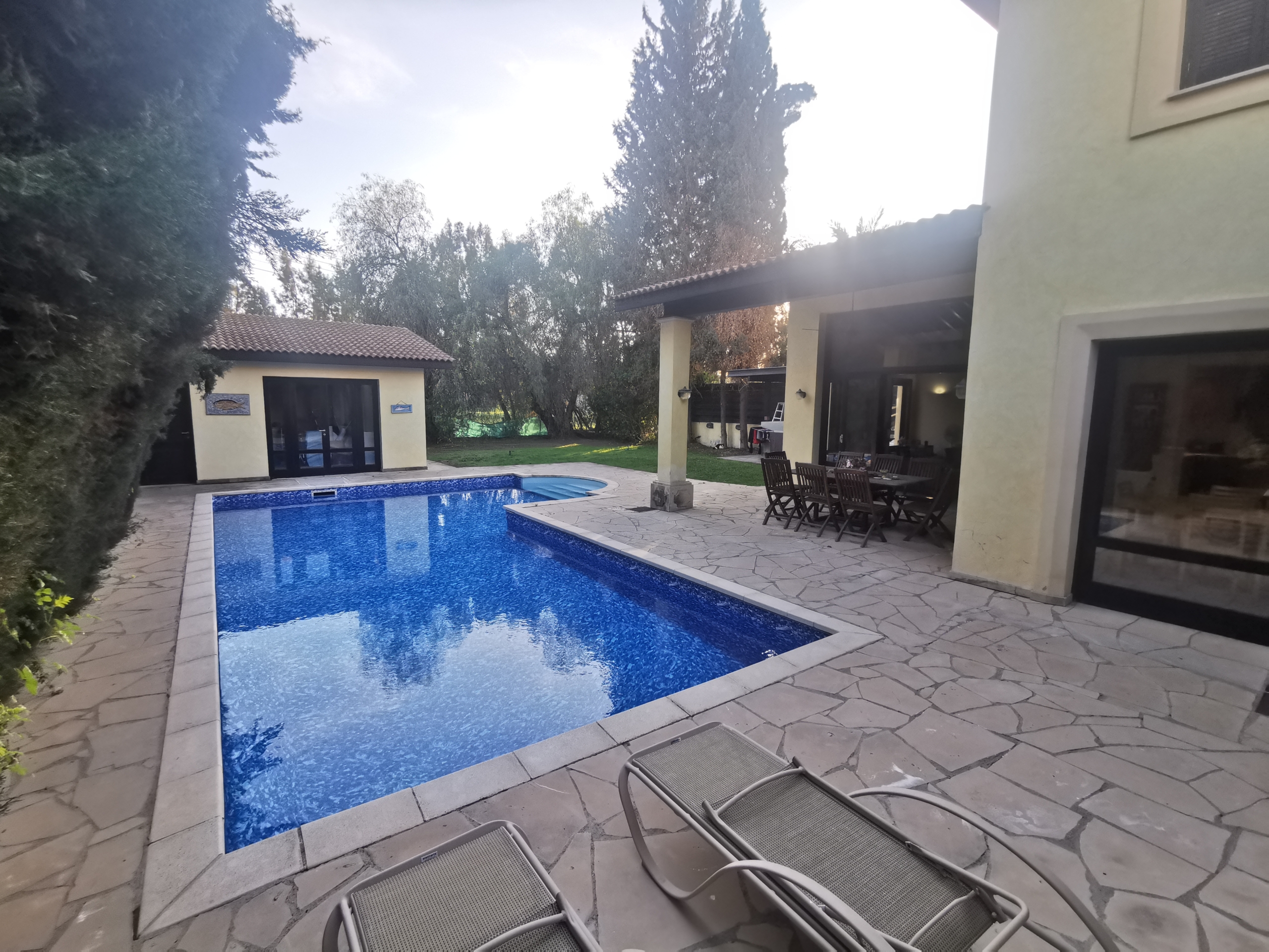 This beautiful 4 Bedroom detached family house is located in the quit residential area of Parisinos. Internally the property offers spacious living, dining and entertaining areas with an internal area of 421sqm. The plot is 711sqm and offers off-street parking and a large mature garden with a swimming pool.