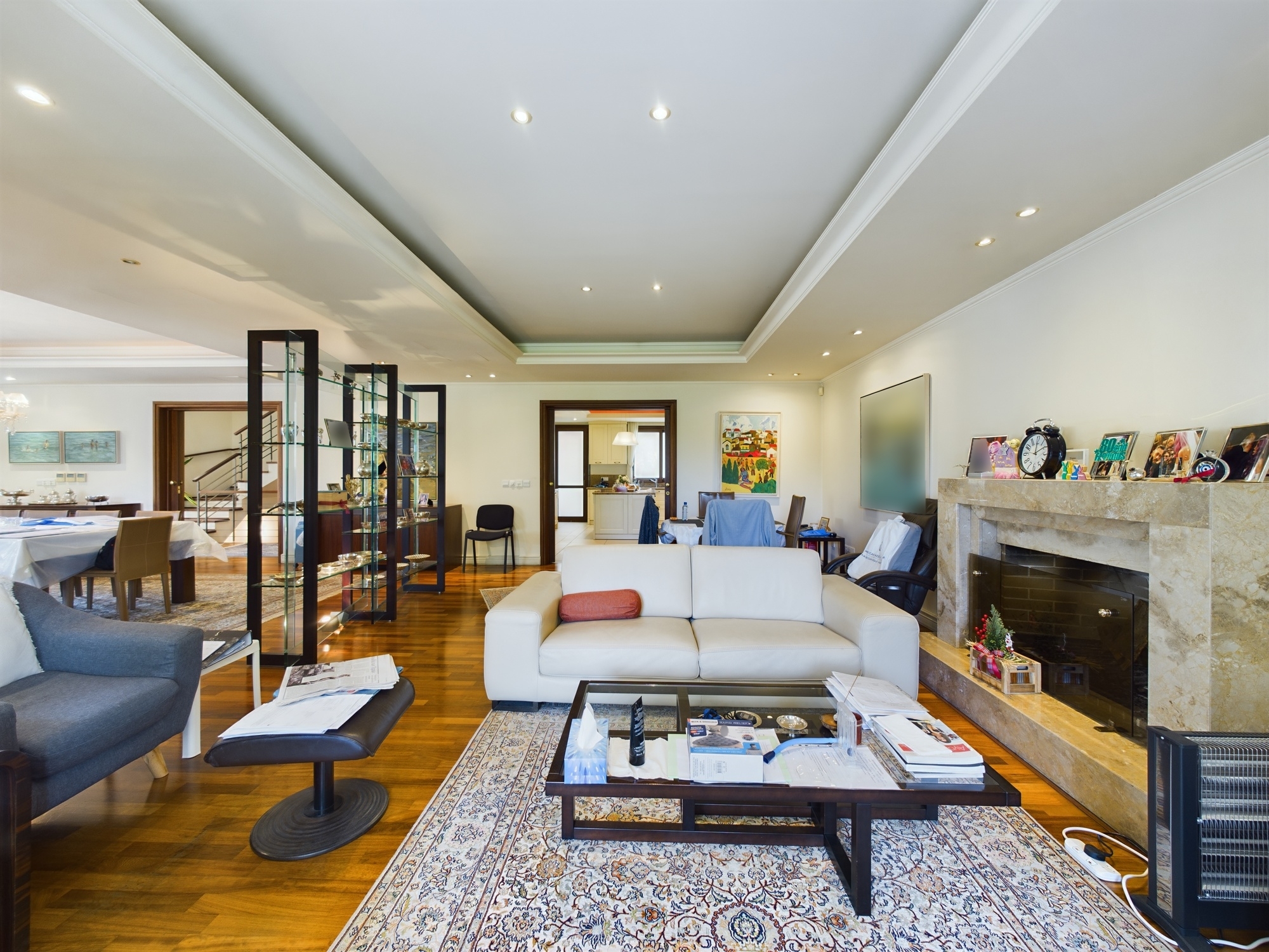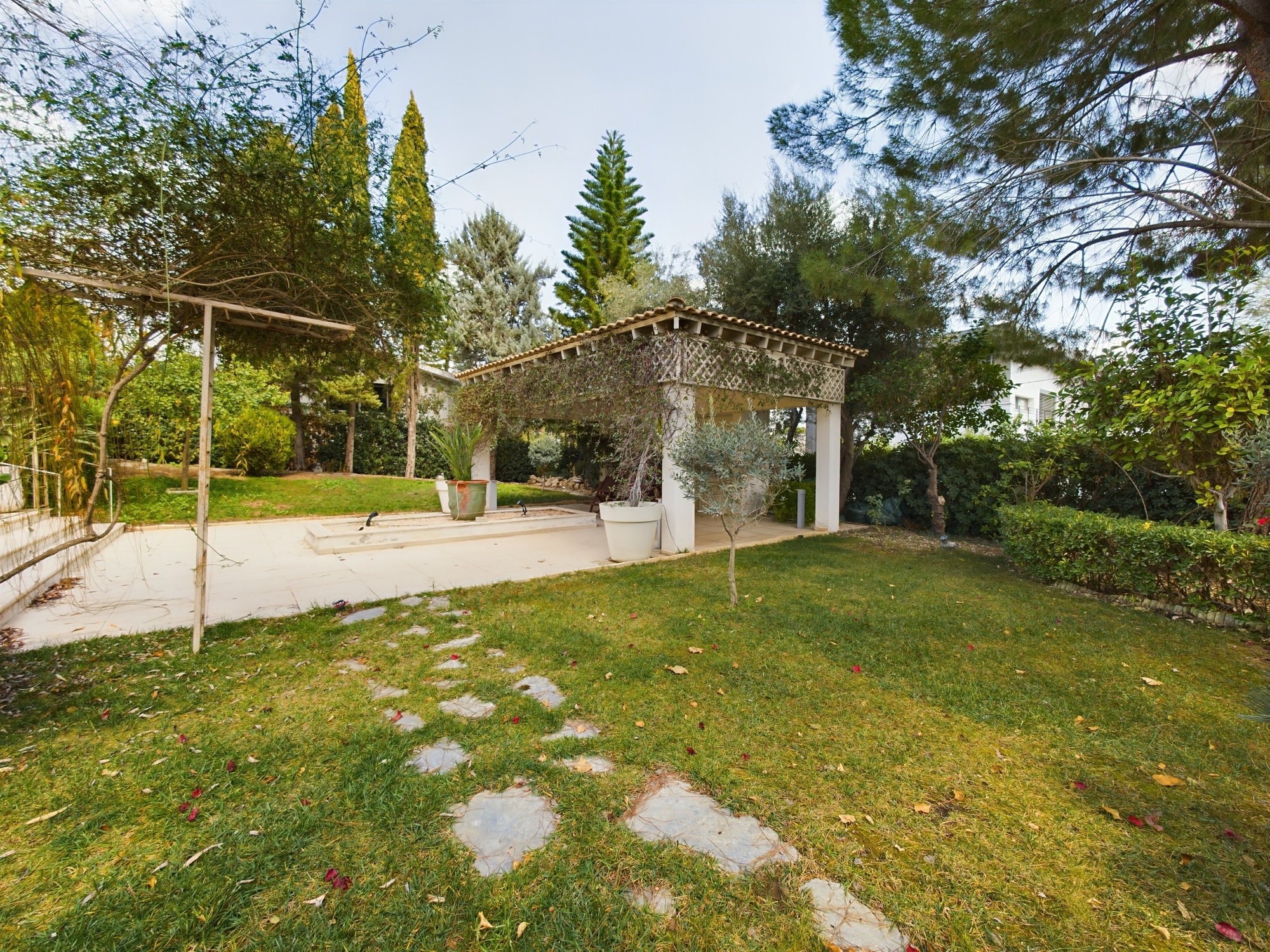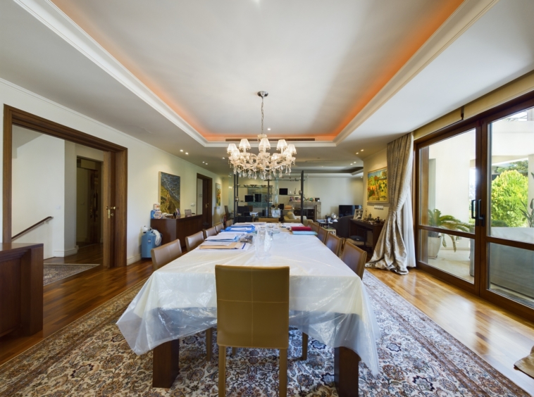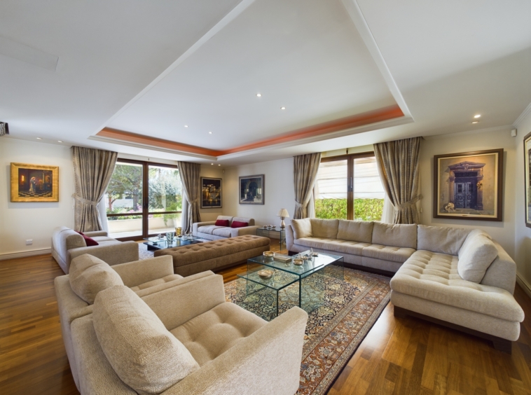 This stunning detached residence with 3 Bedrooms and a large office is located in the quiet residential and sought after area of Mont Parnas in Nicosia. Internally this very well-presented property offers spacious living, dining and entertaining areas with an internal area over the basement, ground and first floor of 600sqm. The plot is 1300sqm and offers off-street parking and garage and a beautiful large mature garden with a swimming pool.